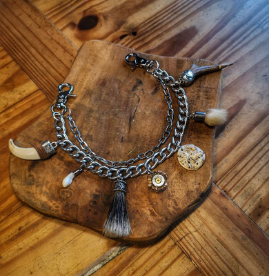Mit viel Liebe zum Detail fertige ich Ihr individuelles Charivari – ganz nach Ihren Wünschen. Ob aus traditionellen Trophäen, persönlichen Erinnerungsstücken oder wertvollen Erbstücken: Gemeinsam gestalten wir ein Schmuckstück, das Ihre Geschichte weiterträgt.
